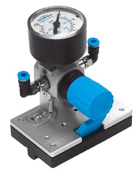 Das Druckregelventil regelt die zugeleitete Druckluft auf den eingestellten Solldruck und gleicht Druckschwankungen aus. Das Manometer zeigt den Druck an Anschluss 2 an. Die Druckluft wird über den Anschluss 3 abgelassen, wenn der Druck an Anschluss 2 den Solldruck überschreitet.