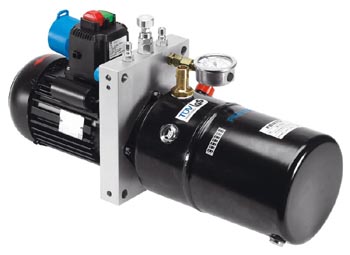 Das Antriebsaggregat liefert konstant den eingestellten Volumenstrom. Ein Überschreiten des Betriebsdrucks wird durch das interne Druckbegrenzungsventil verhindert. Das Aggregat besitzt zwei Tankanschlüsse.