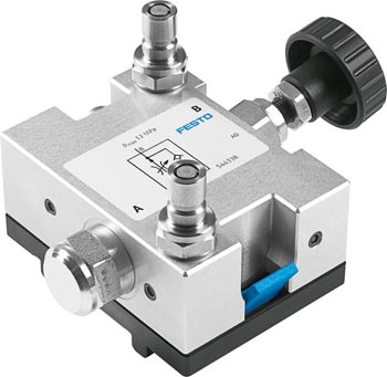 Das Stromregelventil sorgt in der Durchflussrichtung A->B für einen gleichmäßigen Volumenstrom unabhängig vom Lastdruck auf B.