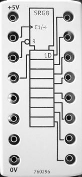 Mit dem Schieberegister kann ein Strom aus seriellen Bits in die Register R1 bis R8 geladen werden, die parallel über die Ausgänge Q1 bis Q8 ausgegebenen werden.