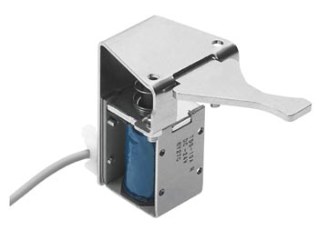 Der Hubmagnet wandelt elektrische Energie in mechanische Energie um. Durch Stromfluss durch eine Spule wird ein Eisenkern angezogen. Nach Abschalten des Stromes wird der Eisenkern durch eine Feder wieder in seine Ruhestellung gedrückt. Der Hubmagnet kann als Weiche oder Stopper verwendet werden.