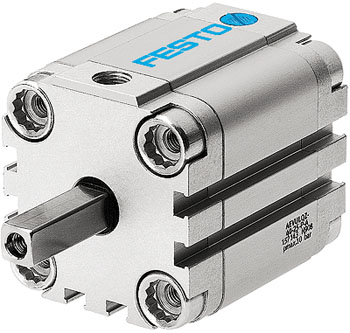 The piston of the single acting cylinder is extended to its back position by the input of compressed air. When the compressed air is switched off, a return spring moves the piston back to its front position.