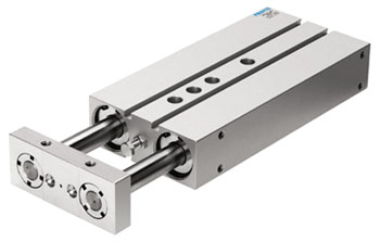 This twin cylinder has two in and out piston rods that move in parallel and that are coupled by a trestle. The construction guarantees minimum torsion when positioning and moving tools or assemblies. Moreover, coming along with the same construction height, the double piston rod conveys the double force as compared to standard cylinders.