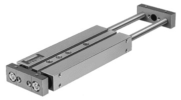 This twin cylinder has two in and out piston rods that move in parallel and that are coupled by a double trestle. The construction guarantees minimum torsion when positioning and moving tools or assemblies. Moreover, coming along with the same construction height, the double piston rod conveys the double force as compared to standard cylinders.