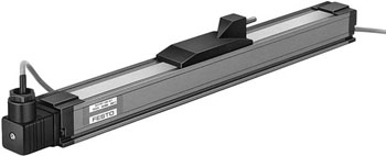 The displacement encoder is a slide potentiometer with longitudinal contact and no connecting-rods. It delivers a voltage signal that is proportional to the pickup position. The pickup position is determined by the piston stroke. The voltage range, which will depict the minimal and maximal piston position, can be defined within the range -10 V to +10 V by the user. The displacement encoder requires a power supply of at least 13 V.